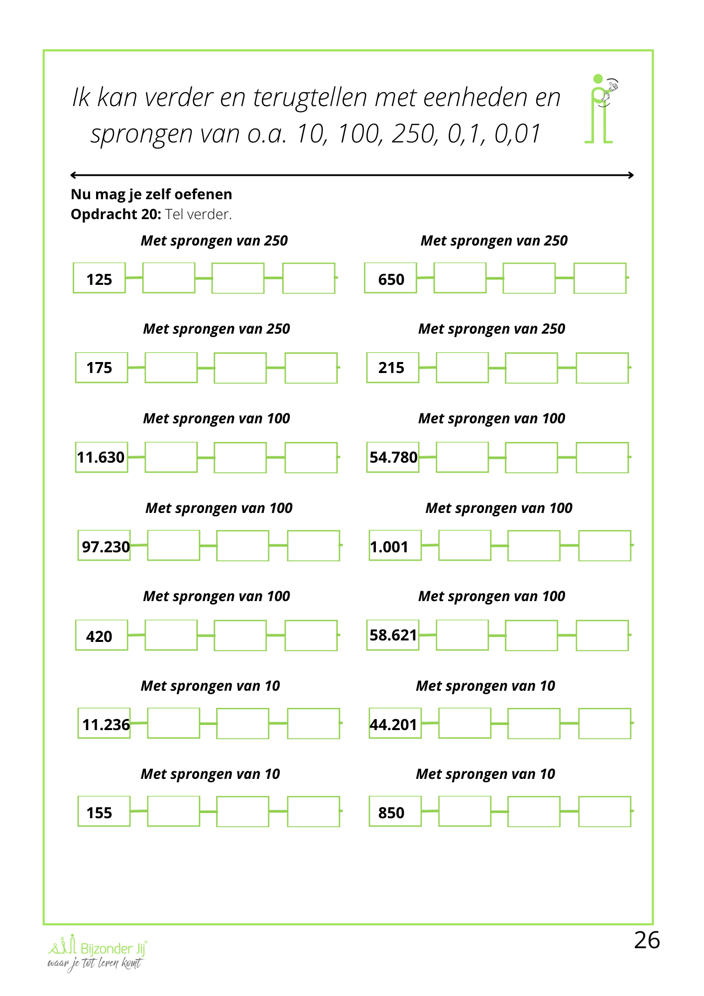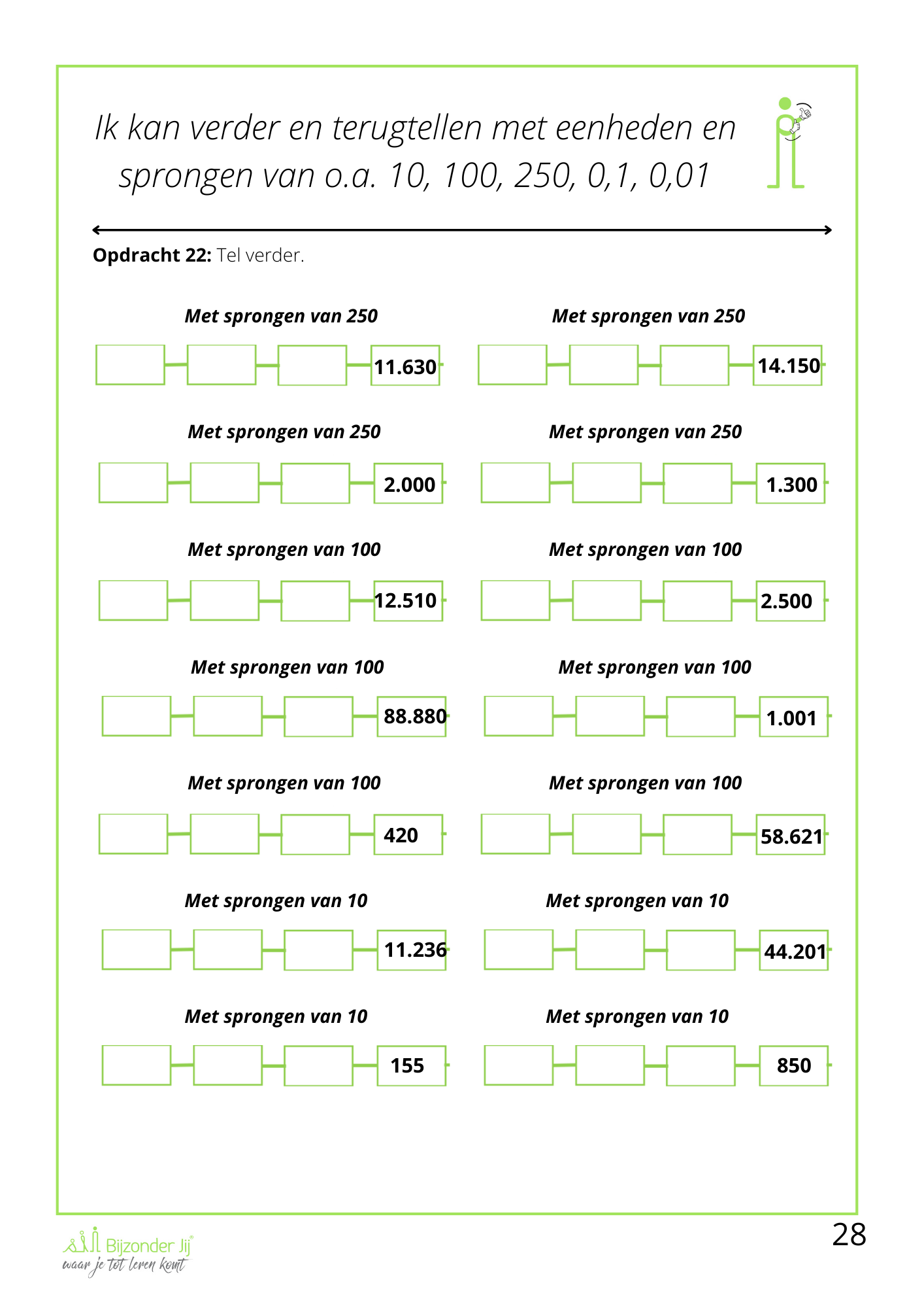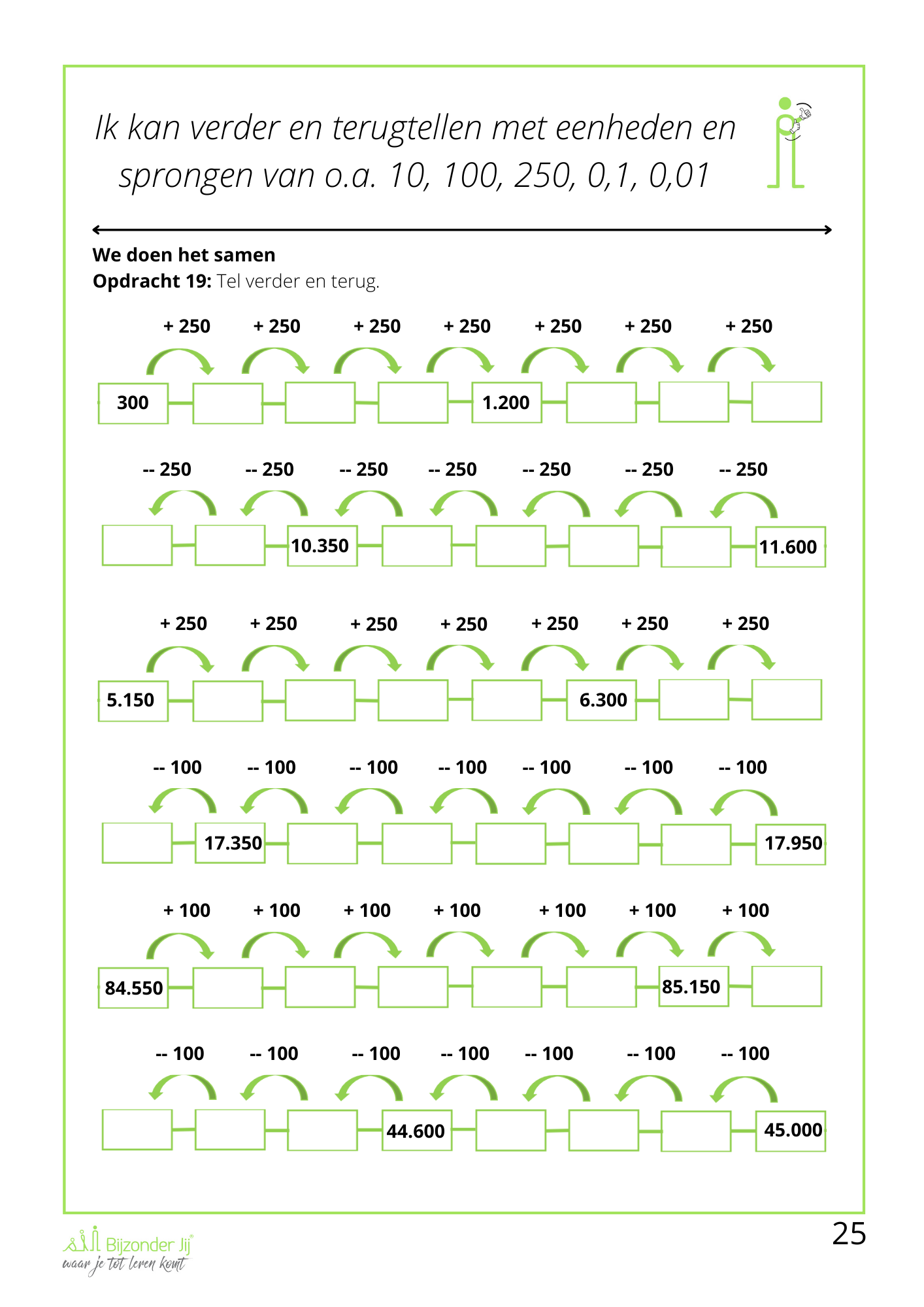 ✅ Verder- en terugtellen met eenheden en sprongen van o.a. 10, 100, 250, 0,1 en 0,01