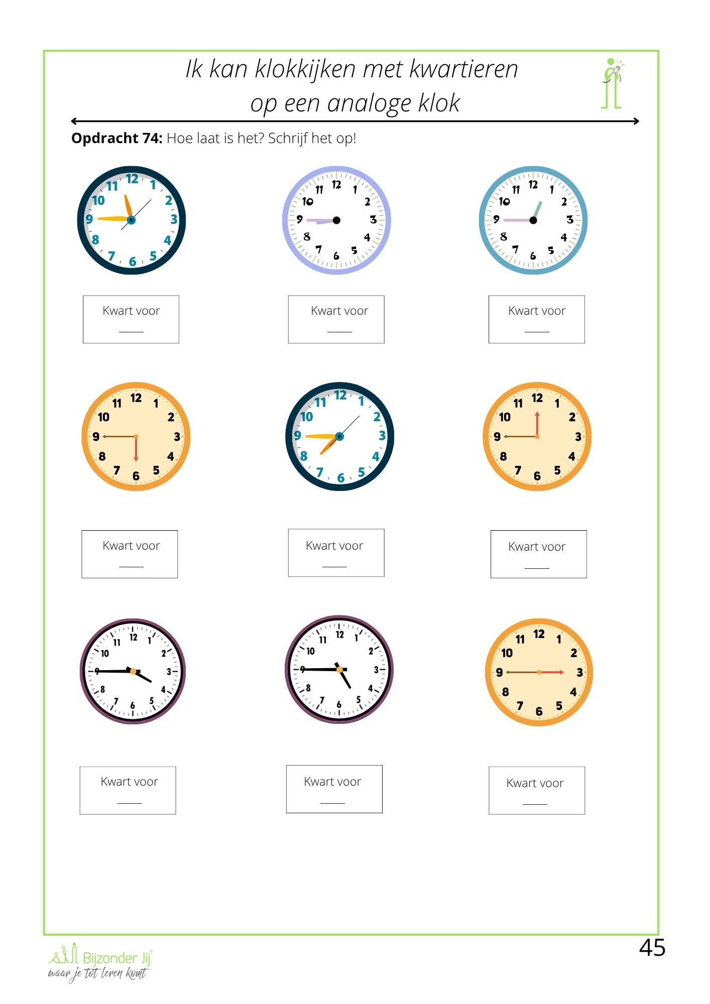 🕒 Ik kan klokkijken met kwartieren op een analoge klok