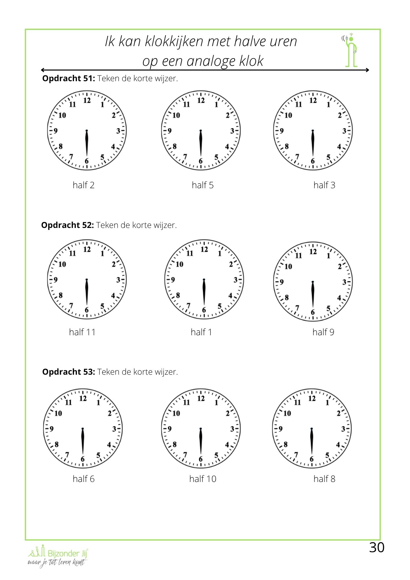 🕒 Ik kan klokkijken met halve uren op een analoge klok